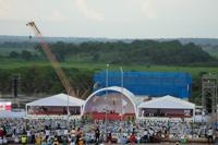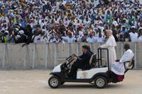 He didn’t refer specifically to slavery. After viewing plans to build a basilica at the site, Leo urged the estimated 30,000 people gathered outside to also build “a better, more welcoming world, where there are no more wars, no injustices, no poverty, no dishonesty."