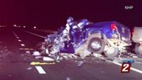 NHP says a preliminary investigation shows that a blue 2014 Chevrolet Silverado pickup truck was wrong-way on I-80, traveling westbound in the eastbound lanes. A gold 2002 Ford F-350 pickup truck was traveling eastbound in the left lane where it was struck head-on by the Silverado.