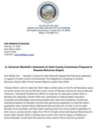 “America’s reckoning with racial justice has brought more urgency to remove Pat McCarran’s racist, anti-immigrant and anti-Semitic legacy from Nevada’s famous landmarks. I fully support the renaming of McCarran Airport and Commissioner Segerblom’s proposal to name it after former Senate Majority Leader Harry Reid. Throughout his entire career, Senator Reid has been a champion for Nevada’s Black community and fought to bring equal opportunity through policy. Senator Reid knew our education system, healthcare system and financial systems disproportionately worked against communities of color. He became our advocate to right the wrongs of the past through his legislative work.