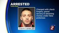 Officials said 27-year-old Travis Lapier was charged with three felony counts of obtaining money be false pretenses, with a value between $1,200 and $5,000, uttering fictitious check, forgery and grand larceny with a value between $1,200 and $5,000.