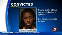 The Department of Justice says 32-year-old Edward Monet Knight was found guilty on Monday by a federal jury on two counts of interference with commerce by robbery and two counts of use of a firearm during and in relation to a crime of violence.