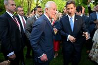 Britain's King Charles III speaks with Christian Turner, British ambassador to the United States, during a garden party at the British Embassy, Monday, April 27, 2026, in Washington. (Roberto Schmidt/Pool via AP)