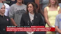 She spoke Monday at a White House celebration with the NCAA championship teams, her first appearance since Biden announced he was leaving the race.