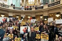 Animal welfare activists converged outside of Wisconsin Gov. Tony Evers’ Capitol office on Monday, chanting “Free the dogs!” and demanding that the governor and attorney general do what they can to shut down a beagle breeding and research facility where many of the protesters clashed with police two days earlier. An estimated 1,000 activists from around the country came to Ridglan Farms in an attempt Saturday to free an estimated 2,000 beagles kept there. Police repelled them with tear gas, rubber bullets and pepper spray. Many of those who were at the facility returned to the Capitol on Monday to demand that Evers take action. Ridglan has denied mistreating animals.