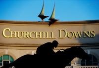FILE - The winners circle at Churchill Downs sits empty, Wednesday, April 22, 2020, in Louisville, Ky. (AP Photo/Darron Cummings, File)
