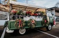 Each arrangement is custom made, wrapped in burlap, and given a button.