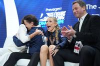 Emilea Zingas and Vadym Kolesnik react to their scores after the free dance competition at the U.S. Figure Skating Championships, Saturday, Jan. 10, 2026, in St. Louis. (AP Photo/Stephanie Scarbrough)
