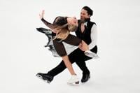 Madison Chock and Evan Bates skate during the free dance competition at the U.S. Figure Skating Championships, Saturday, Jan. 10, 2026, in St. Louis. (AP Photo/Stephanie Scarbrough)