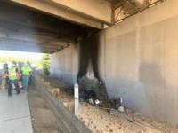 Fire crews responded to a fire at a homeless encampment underneath the freeway overpass at I-580 near Kietzke Lane on Thursday.