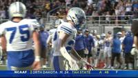 Blackstone Valley Schools forward Colin Dorgan celebrates after scoring the double-overtime game-winning goal against Portsmouth High School in the Rhode Island high school hockey state semifinal Wednesday, March 11, 2026, at Schneider Arena in Providence, R.I. (Courtesy of T.J. Auclair & Kyle Auclair/Little Big Leaguers Photography via AP)