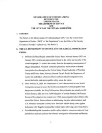 The DOJ has announced a new Memorandum of Understanding with the State of Nevada to comply on immigration enforcement.