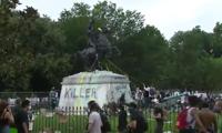 Protesters tried to pull down a statue of President Andrew Jackson near the White House Monday night before being dispersed by police.