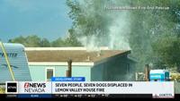 A house fire in Lemmon Valley has displaced seven people and seven dogs. The fire started in the attic.