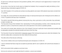 The World Health Organization said that it will temporarily drop hydroxychloroquine from its global study into experimental COVID-19 treatments, saying that its experts need to review all available evidence to date.