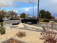 A motorcyclist has been hospitalized with serious injuries after a three-vehicle crash in Sparks on Thursday.
