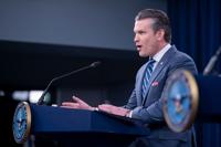 Defense Secretary Pete Hegseth speaks to members of the media during a press briefing at the Pentagon in Washington, Thursday, April 16, 2026. (AP Photo/Kevin Wolf)