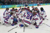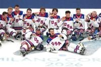 US players celebrate after winning the gold medal at the end of the ice hockey match between United States and Canada at the 2026 Winter Paralympics, in Milan, Italy, Sunday, March 15, 2026. (AP Photo/Luca Bruno)
