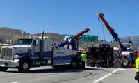 A portion of I-580 south is back open near the Mt. Rose Highway junction after crews uprighted a semi-truck.