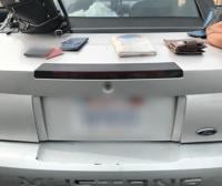 Multiple law enforcement agencies arrested three people; found guns and drugs in their vehicle.