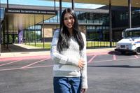 Fayetteville High senior Lily Adler, president of the Young Democrats of Arkansas, in front of Fayetteville High School Tuesday, April, 7, 2026 in Fayetteville, Ark. (AP Photo/Michael Woods) CORRECTION: Adler, not Alder
