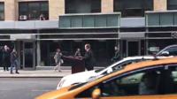 Melissa McCarthy has gone into the streets of Manhattan to lampoon White House press secretary Sean Spicer. The comedian was captured on video Friday morning riding a motorized podium in midtown while dressed as Spicer, presumably a sequence that will air when McCarthy hosts the next "Saturday Night Live."