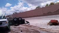 Nevada Highway Patrol troopers say one lane of I-80 east at Painted Rock east of Sparks will remain closed until midnight after a semi-truck smashed into a guardrail on Tuesday afternoon.