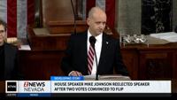 Republican Mike Johnson has won re-election to the House speakership on dramatic first-round voting.