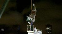 A statue of Christopher Columbus in downtown Chicago’s Grant Park was taken down early Friday.