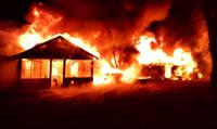 Upon arrival, neighbors were attempting to extinguish the fire with a garden hose.