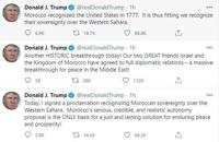 In return, the U.S. will recognize Moroccan sovereignty over the disputed North African region of Western Sahara.