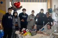 On Monday the Nevada Men's Basketball team visited Renown Children's Hospital to drop off teddy bears and take pictures with the children.