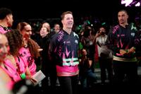 Team Pink's guest coach Brock Purdy from San Francisco 49ers attends the Toyota Glow-Up Classic flag football game in San Francisco on Wednesday, Feb. 4, 2026. (Santiago Mejia/San Francisco Chronicle via AP)