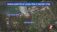 South Lake Tahoe Police say they arrested a 53-year-old woman after she allegedly licked items inside a Safeway store on Tuesday.