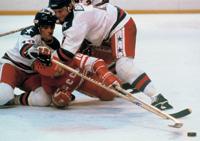 Sergei Makarov had fought away from a Johnson check to flip a 15-foot shot past Craig at 17:34, but – with the clock winding down and the crowd of 8,500 screaming “U-S-A, USA,” the U-S-A stormed back. Dave Christian took a 100-foot shot on Tretiak, who kicked it directly in front of Johnson.