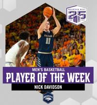 For the first time in his career, Nevada Men’s Basketball player Nick Davidson has been named the Mountain West Player of the Week after leading the Pack to a historical week that included victories over ranked opponents in consecutive games for the first time in program history.