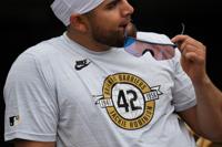LOS ANGELES (AP) — Major League Baseball honored Jackie Robinson on Wednesday with every player, coach and umpire wearing his No. 42 to mark the 79th anniversary of the infielder breaking the sport's color barrier.