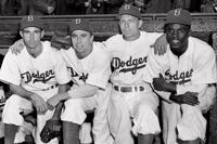 Robinson debuted for the Brooklyn Dodgers on April 15, 1947. He went on to win Rookie of the Year honors, become a six-time All-Star and the 1949 National League MVP. He played in six World Series, and won his only championship in 1955 with the Dodgers.