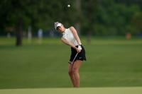She started on No. 10 and the American star was in full flight after making the turn on a rain-soaked course that got little roll in the fairway. She made birdie on the three par 5s on the front nine and really shined on the tough par 3s — a 6-iron to 4 feet on No. 2, a 5-iron to 5 feet on No. 7.