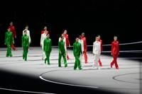 People wearing oversized, mascot-style heads representing opera composers Giacomo Puccini, Gioachino Rossini and Giuseppe Verdi appeared on the central stage, before giant paint tubes floated above and dropped silk of red, blue and yellow — the primary colors — before an early parade of various-color-wearing characters arrived in the stadium. They represented music and art, literature and architecture, appreciations for beauty and history and, above all, “La Dolce Vita” (loosely, Italian for “The Good Life” and the name of a 1960 film by Federico Fellini).