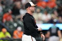 BALTIMORE (AP) — With a big bruise on the right side of his face and several fractures, Baltimore Orioles manager Craig Albernaz was back at the ballpark a day after being hit by a foul ball in the dugout.