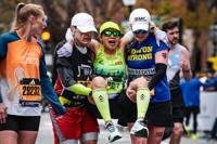A similar scene played out when runner Lan Nguyen of Washington, D.C., struggled toward the finish. Fellow racers Jessica Kier of Snohomish, Washington, Meredith Rosenberg of Boston and William Bara-Jimenez of Bethesda, Maryland, helped her to the finish — at one point carrying her part of the way. Nguyen then scooted across the finish line.