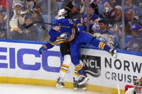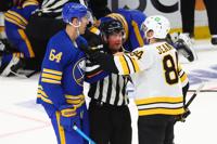 BUFFALO, N.Y. (AP) — Mattias Samuelson broke a tie with 3:24 left and Buffalo overcame a two-goal deficit in the final eight minutes to beat the Boston Bruins 4-3 on Sunday night in the Sabres’ first playoff game in 15 years.