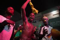 Across the capital Dakar, fireworks lit up the sky, horns blared and people of all ages chanted and danced in the streets, dressed in national colors and holding Senegalese flags.