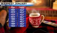 This January was the third warmest on record. The average temperature when you combine both the high and low comes to 40.8 degrees. We’ve been warmer only two other years.