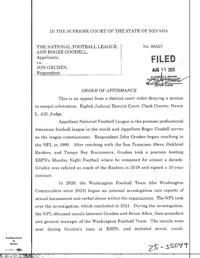 In 2022, the NFL appealed to Nevada’s high court after a judge in Las Vegas rejected league bids to dismiss Gruden’s claim outright or to order out-of-court talks through an arbitration process that could be overseen by Goodell.