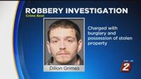 Grimes was charged with burglary, possession of stolen property, prohibited person in possession of a gun and unauthorized use of a credit card.