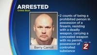 Carroll was charged with Prohibited Person Possess Firearm (X2), Resisting with Deadly Weapon, Carrying Concealed Firearm without Permit (X2), Possession of a Controlled Substance.