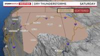 Gusty winds, small hail, frequent lightning, fire starts, and flooding over burn scars are possible with any storms that do develop. Overall, the flooding threat is low in the valley, but burn scars will be something to watch. Dry lightning is also possible, but it will be isolated to spotty.