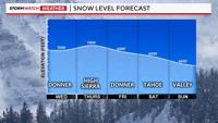 The rain and snow will come in waves, with some breaks in between. Donner is right at the cutoff for both the snow level and dry versus wet line.