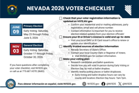 The Nevada Secretary of State’s Office is sending a postcard to every active registered voter with important dates and a voter checklist as planning for the 2026 election cycle begins.